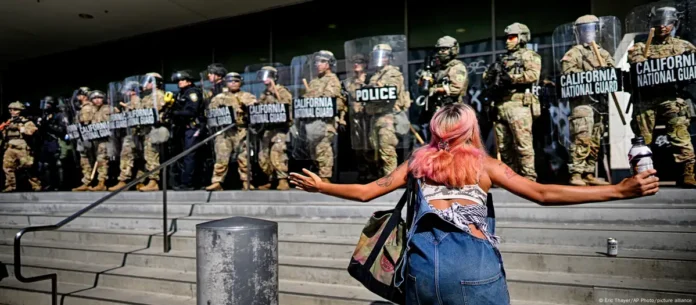 Για το ίδιο θέμα η Stuttgarter Zeitung παρατηρεί: «Η βία εκδηλώθηκε μόνο αφότου ο Τραμπ κινητοποίησε τον στρατό για να καταπνίξει τις διαμαρτυρίες εναντίον των μεταναστευτικών αρχών. Το ότι μερικοί εκατοντάδες ταραχοποιοί εκμεταλλεύθηκαν την κατάσταση, δεν συνιστά ‘εξέγερση’ κατά της κυβέρνησης, που θα μπορούσε να συγκριθεί με τα όσα έπραξαν οι οπαδοί του Τραμπ εισβάλλοντας στο Κογκρέσο το 2021. Πρόκειται για σκηνοθετημένη κρίση, με στόχο να αποσπάσει την προσοχή από τις αποτυχίες του Τραμπ».