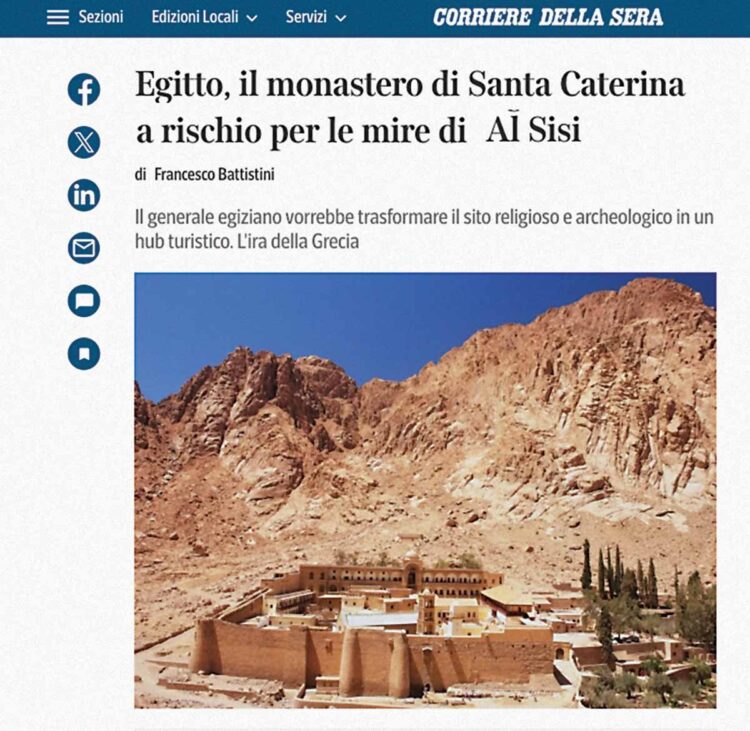 Ὕβρις γιά τήν Μονή τοῦ Σινᾶ – Ἀπό τόπος τοῦ Ἀναστημένου Χριστοῦ, θέρετρο διακοπῶν! – Ἀποκαλυπτήρια σέ ἀναλυτικό ρεπορτάζ τῆς ἰταλικῆς ἐφημερίδος «Corriere della Serra», πού φέρνει στό φῶς