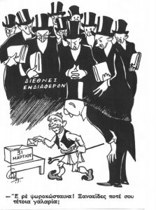 Αυτή είναι μία ιστορική γελοιογραφία του Φωκίωνα Δημητριάδη στο ΒΗΜΑ, Μάρτιος 1946, και περιέχεται στο σπάνιο (πλέον) λεύκωμα του «Το παρδαλό κατσίκι», το οποίο κυκλοφόρησε κατά τη διάρκεια του Εμφυλίου Πολέμου…