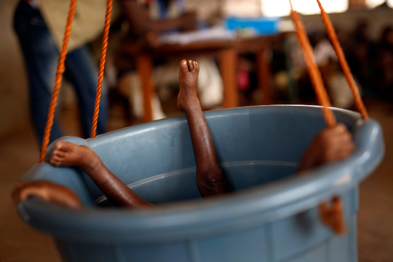 18 Φεβρουαρίου: Ενα βρέφος στην Κεντροαφρικανική Δημοκρατία ζυγίζεται σε αυτήν την ιδιότυπη ζυγαριά. Ο μισός πληθυσμός της χώρας υποφέρει από υποσιτισμό, εν μέσω διάλυσης της αγροτικής παραγωγής και του δικτύου υγείας.