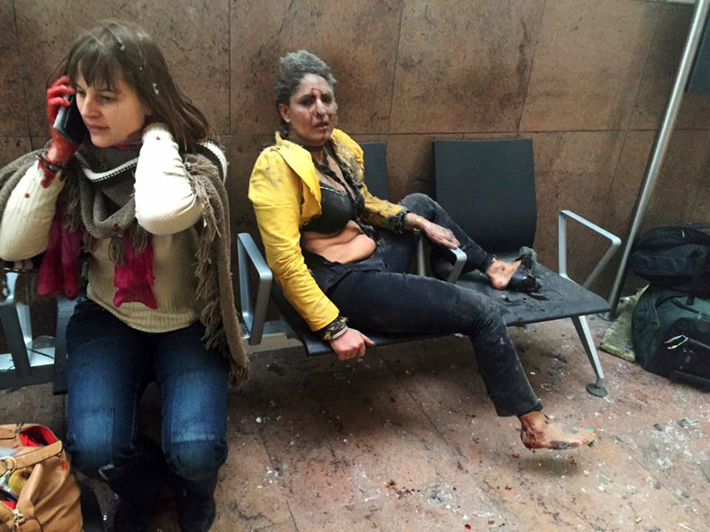 22 Mαρτίου: Οι Βρυξέλλες δέχονται επίθεση. Βόμβες σκάνε στο κεντρικό αεροδρόμιο του Ζάβεντεμ και σε κεντρικό σταθμό του μετρό. Πάνω από 30 άτομα χάνουν τη ζωή του. Η φωτογραφία της αεροσυνοδού στο αεροδρόμιο, μετά την επίθεση, με τα ρούχα σκισμένα και το πρόσωπο σκονισμένο αποτυπώνει τον τρόμο. Τον τρόμο που και ήθελαν και πέτυχαν να σκορπίσουν οι τζιχαντιστές.