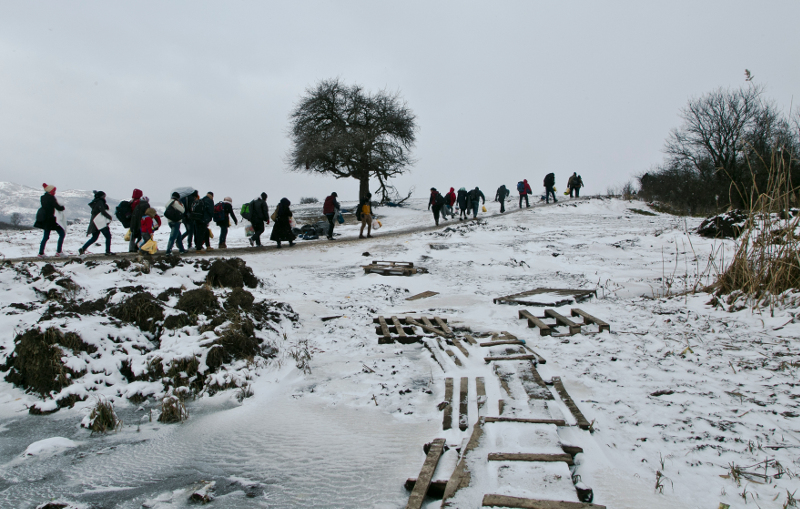 18 Ιανουαρίου: Πρόσφυγες διασχίζουν τη χιονισμένη ΠΓΔΜ. Με το όνειρο της Ευρώπης.