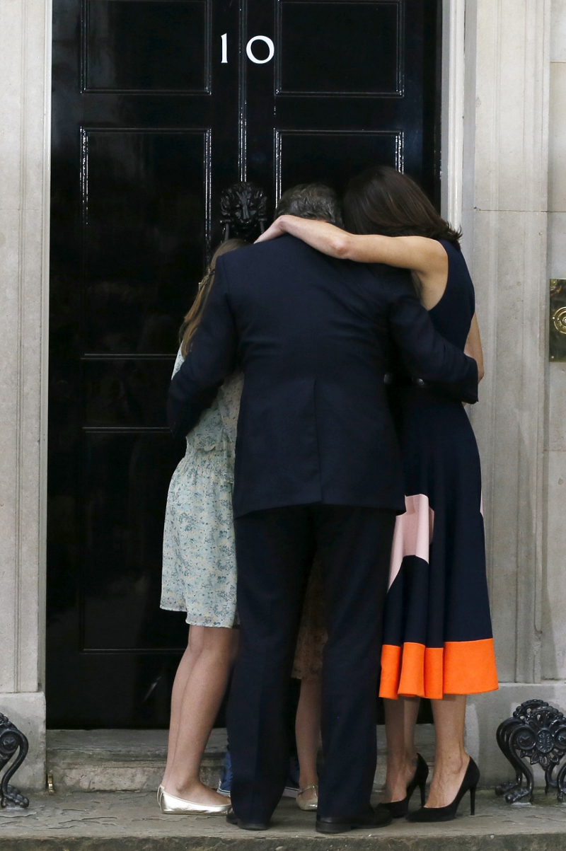 24 Ιουνίου: Ο Ντέιβιντ Κάμερον με την σύζυγό του και τα παιδιά του αγκαλιά, έξω από την πρωθυπουργική κατοικία στο Νο 10 της Ντάουνινγκ Στριτ, λίγο μετά το Brexit και την παραίτησή του από την πρωθυπουργία.