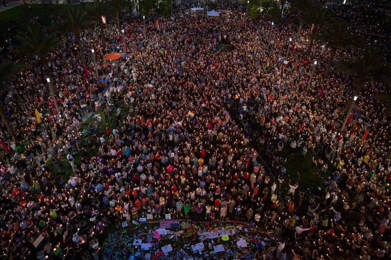 13 Ιουνίου: Χιλιάδες άτομα στο Ορλάντο με κεριά στα χέρια τιμούν τη μνήμη των δεκάδων νέων που έχασαν την προηγούμενη ημέρα τη ζωή τους σε γκέι μπαρ, όταν ένοπλος μπήκε μέσα και σκόρπισε το θάνατο. Το ISIS ανέλαβε την ευθύνη για το χτύπημα.