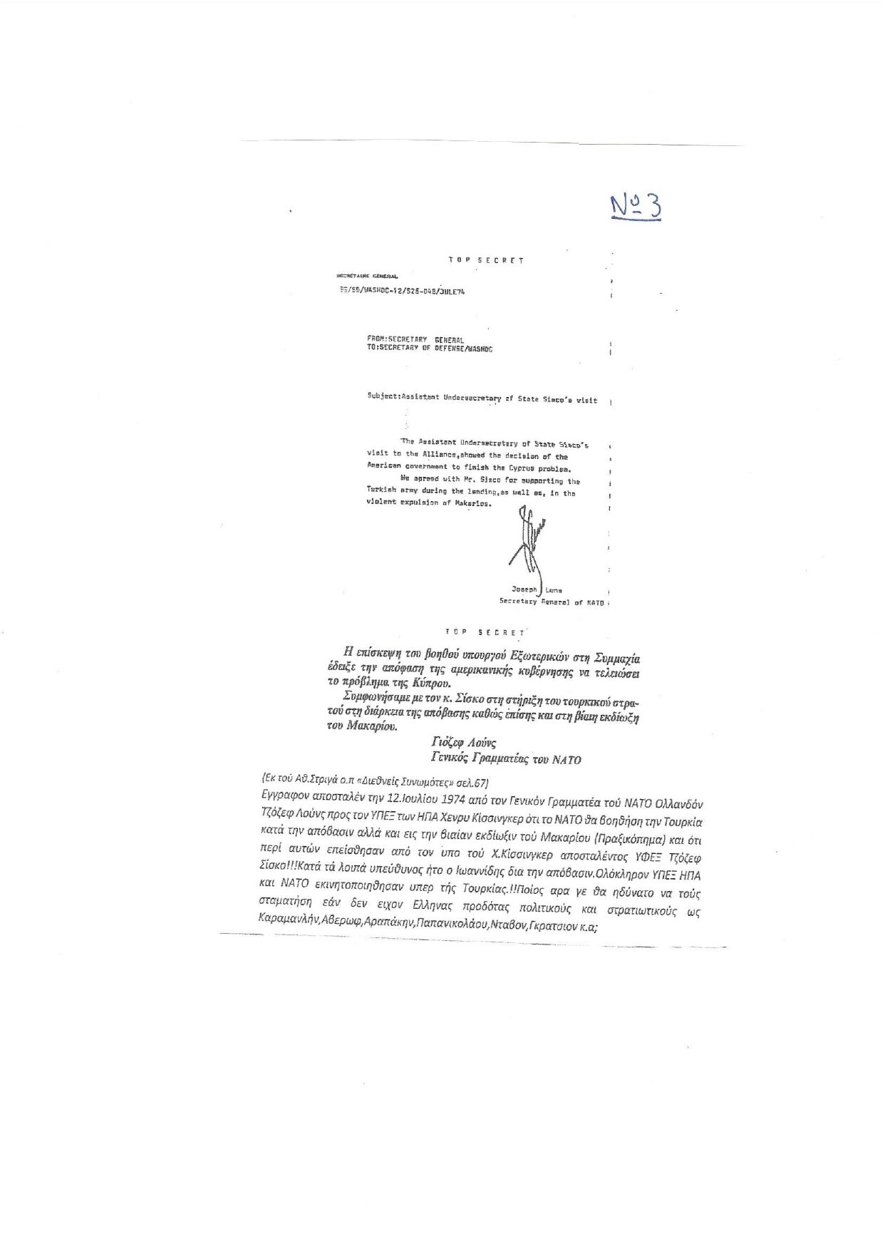 Επανέρχομαι ως προς το περιβόητο έγγραφο του ΝΑΤΟ της 12ης/7/1974, που προσετέθη στο κείμενο.