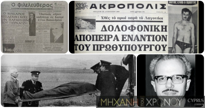 …9.Μετά την αποδεδειγμένην είς γνώσιν τού Μακαρίου αποτυχημένην απόπειραν δολοφονίας τού Παπαδοπούλου και βλέπων ο ίδιος ο Μακάριος ότι δέν βλέπει διέξοδον διαφυγής καλείται την 2αν Σεπτεμβρίου τού 1968 εις Αθήνας μετά τού ΥΠΕΞ Κυπριανού όπου αναγκαστικώς και σφόδρα στριμωγμένος υποχρεούται εις την επανάληψιν τών Διακοινοτικών συνομιλιών Κληρίδη-Ντενκτάς.