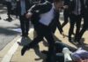 (Στη φωτογραφία: σωματοφύλακας του Τούρκου προέδρου κλωτσά διαδηλωτή που βρίσκεται στο έδαφος κατά την επίθεση στην Ουάσινγκτον, Μάιος 2017.)