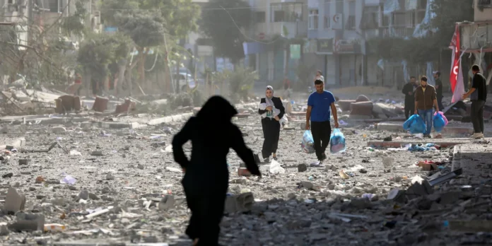 Παλαιστίνιοι εγκαταλείπουν τα σπίτια τους μετά από ισραηλινό βομβαρδισμό στην πόλη της Γάζας © AP Photo/Abed Khaled