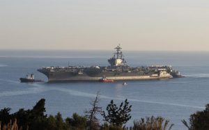 Το εικονιζόμενο εντυπωσιακό αεροπλανοφόρο «USS George H.W. Bush» βρέθηκε την προηγούμενη εβδομάδα στη βάση της Σούδας (από όπου και η φωτογραφία).