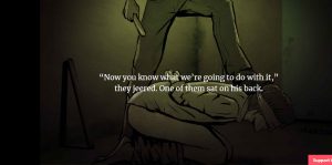 Something was placed in his hand. A sex toy. The men stripped him and forced him onto his knees and onto the ground.