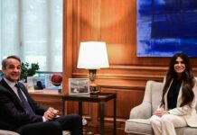 Η Κίμπερλι Γκιλφόιλ στο Μέγαρο Μαξίμου (φωτ.: EUROKINISSI / Τατιάνα Μπόλαρη)
