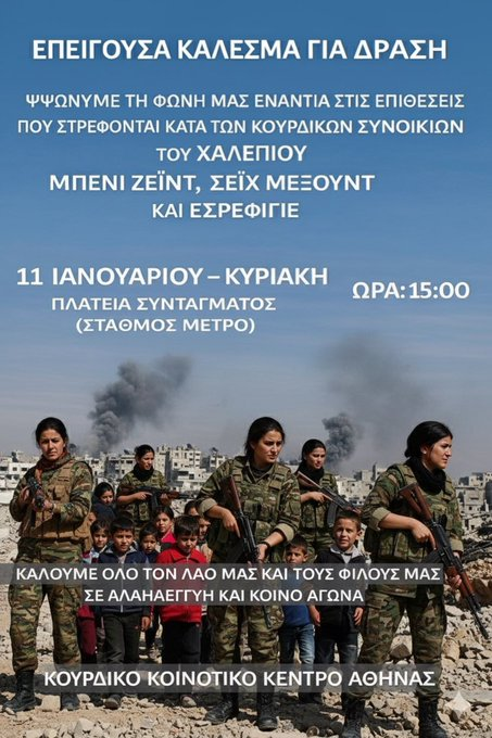 #Hellas: Aυριο ο ελληνικος λαος θα συμπαρασταθει στον κουρδικο λαο στης 3 η ωρα στην πλατεια συνταγματος!! Οσο για τους Μητσοτακη-Γεραπετριτη …αυτοι οπως παντα δεν θα κανουν τιποτα,.. οπως δεν βοηθησαν και τους ελληνες αγροτες και ψηφισαν την συμφωνια της ντροπης με την Μερκοσουρ.. ισως η χειροτερη κυβερνηση μετα το 1974.