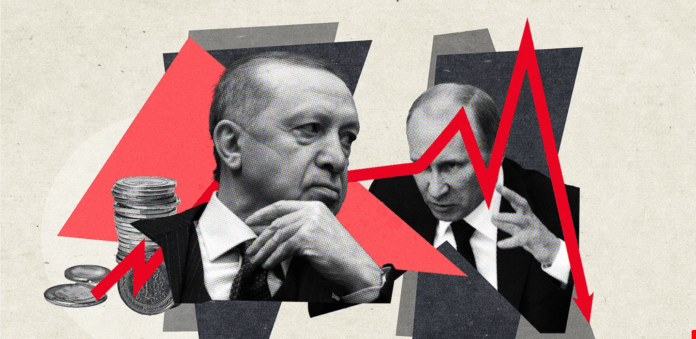 Οι Ρώσοι και οι Ουκρανοί αντιπροσώπευαν πάνω από το ένα τέταρτο των ξένων επισκεπτών στην Τουρκία πέρυσι. Αυτό το καλοκαίρι, κατά πάσα πιθανότητα, θα εμφανιστούν πολύ λιγότεροι. Οι δυτικές κυρώσεις κατά της Ρωσίας, ενός από τους κύριους εμπορικούς εταίρους της Τουρκίας και τον κύριο προμηθευτή φυσικού αερίου της, θα επιφέρουν στην οικονομία ένα ξεχωριστό πλήγμα. Ο πόλεμος έχει ήδη «παγώσει» τις τουρκικές αγορές. Στις 24 Φεβρουαρίου, η λίρα όδευε προς τη χειρότερη μέρα της φέτος.