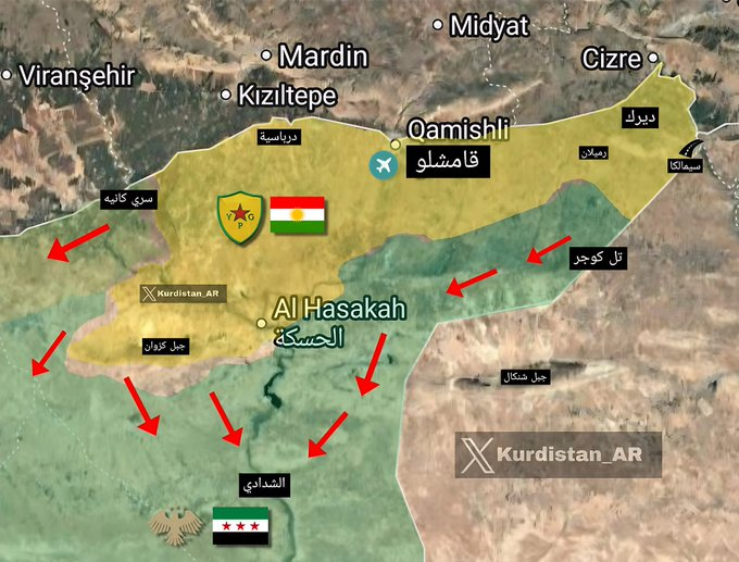 Ο συριακός στρατός HTS υποχώρησε από την περιοχή της Χασακά προς την Αλ-Σανταντί (Μεραρχίες 47 και 52).