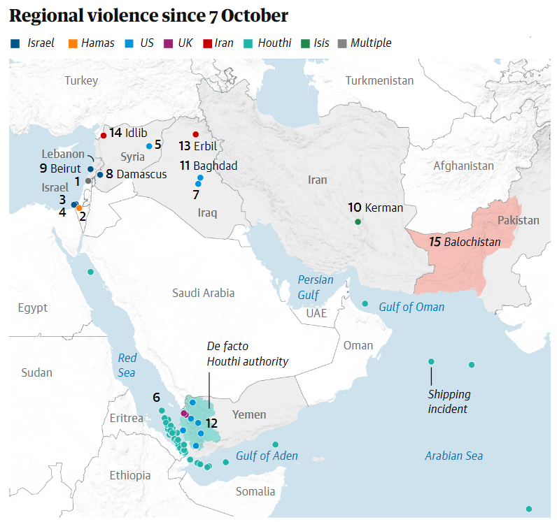 Iran has launched strikes on sites in Pakistan and Iraq, and the US has struck Houthi sites in Yemen. Meanwhile efforts are continuing to deliver aid to Gaza