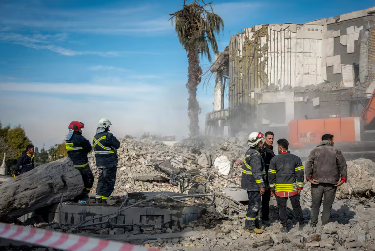 - Emergency services clear the rubble of the house that was hit by an Iranian missile strike in Irbil, Iraq, on Tuesday. Photograph: Julia Zimmermann/AP