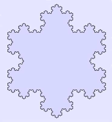 Koch: άπειρο μήκος, πεπερασμένη επιφάνεια· κάθε τμήμα επαναφέρει το μοτίβο — το μερικό ενσωματώνει το ολικό.