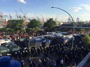 Οι διαδηλωτές υποδέχθηκαν τον Τραμπ και τους άλλους παγκόσμιους ηγέτες που ήρθαν στο Αμβούργο για τη διμερή σύσκεψη φωνάζοντας «Καλώς ήρθατε στην Κόλαση!».
