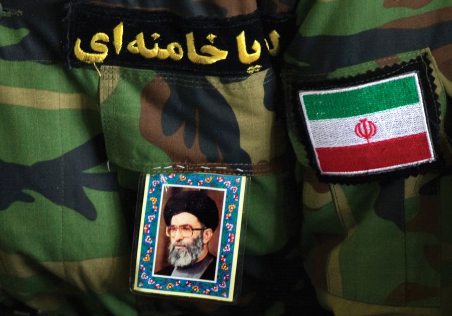 A MAN wearing an Iranian Revolutionary Guard uniform sports a portrait of Iran’s Supreme Leader Ayatollah Ali Khamenei.. (photo credit:REUTERS)