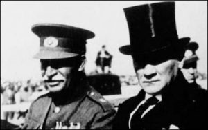 ![]() Ruthless modernizers: Iran’s Reza Shah (left) and Turkey’s Mustafa Kemal Atatürk in 1934. |