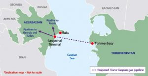 The Trans-Caspian Gas Pipeline is a proposed 300 km underwater pipeline that would stretch between Turkmenistan coastal city Turkmenbashi to Baku in Azerbaijan and may also include a connection between the huge Tengiz field in Kazakhstan and Turkmenbashi.