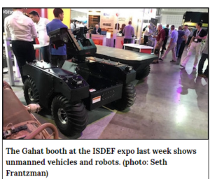 ![]() The Gahat booth at the ISDEF expo last week shows unmanned vehicles and robots. (photo: Seth Frantzman) |