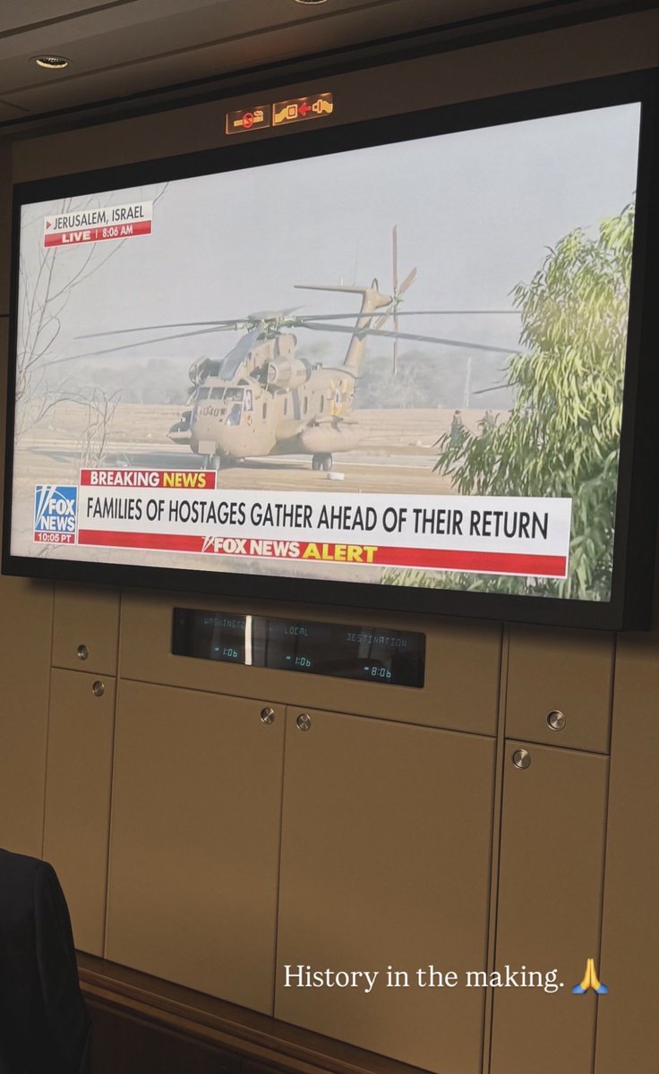 Ο Ντόναλντ Τραμπ παρακολουθεί live τη διαδικασία από το Air Force One λίγο πριν προσγειωθεί στο Ισραήλ.