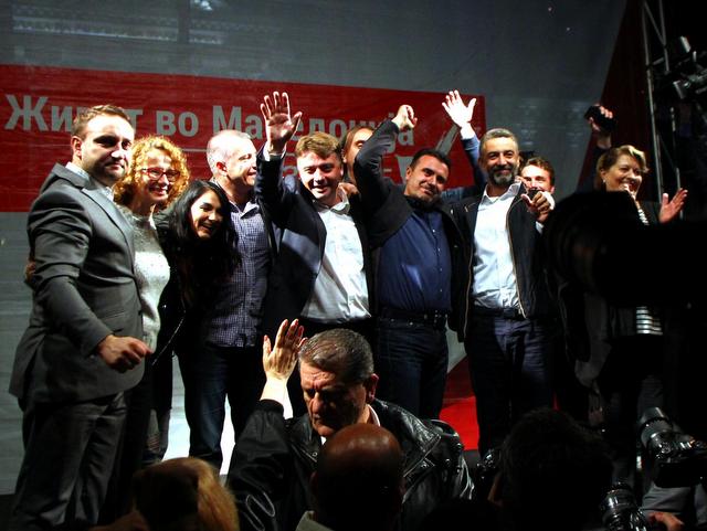 | Macedonian PM and SDSM leader Zoran Zaev celebrated the election victory with his party teammates and supporters in Skopje. Photo: MIA |