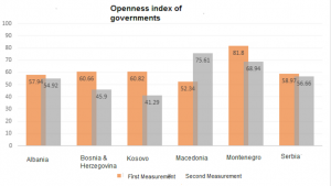 The openness index measures the level of openness of the Western Balkan governments towards citizens and society, and was created in order to define to what extent the citizens of the region receive convenient and understandable information from the government institutions. The first measurement was conducted from December 2016 until February 2017.