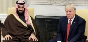 WASHINGTON, DC – MARCH 14: U.S. President Donald Trump (R) meets with Mohammed bin Salman, Deputy Crown Prince and Minister of Defense of the Kingdom of Saudi Arabia, in the Oval Office at the White House, March 14, 2017 in Washington, DC. (Photo by Mark Wilson/Getty Images)