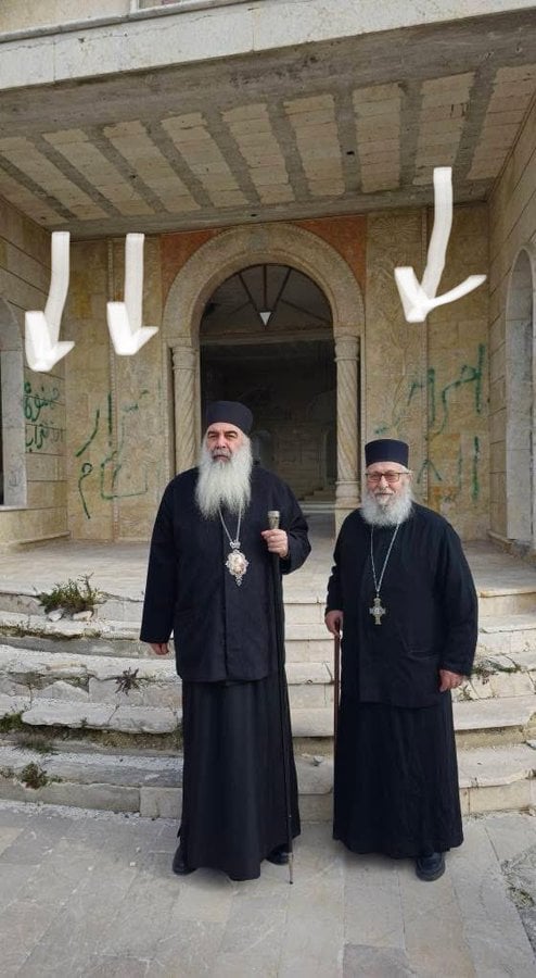 Syria-Idlib-Rum: Κατά την επίσκεψη του Ελληνορθόδοξου Μητροπολίτη Λαττάκειας, Αθανασίου Φαχντ, στις εκκλησίες της Ιντλίμπ, βρήκε τις φράσεις «Καμία προσέγγιση» και «HTS», η τρομοκρατική οργάνωση που δίνει δηθεν διαβεβαιώσεις στον κόσμο για την προστασία όλων των Χριστιανικών συστατικών στη Συρία…