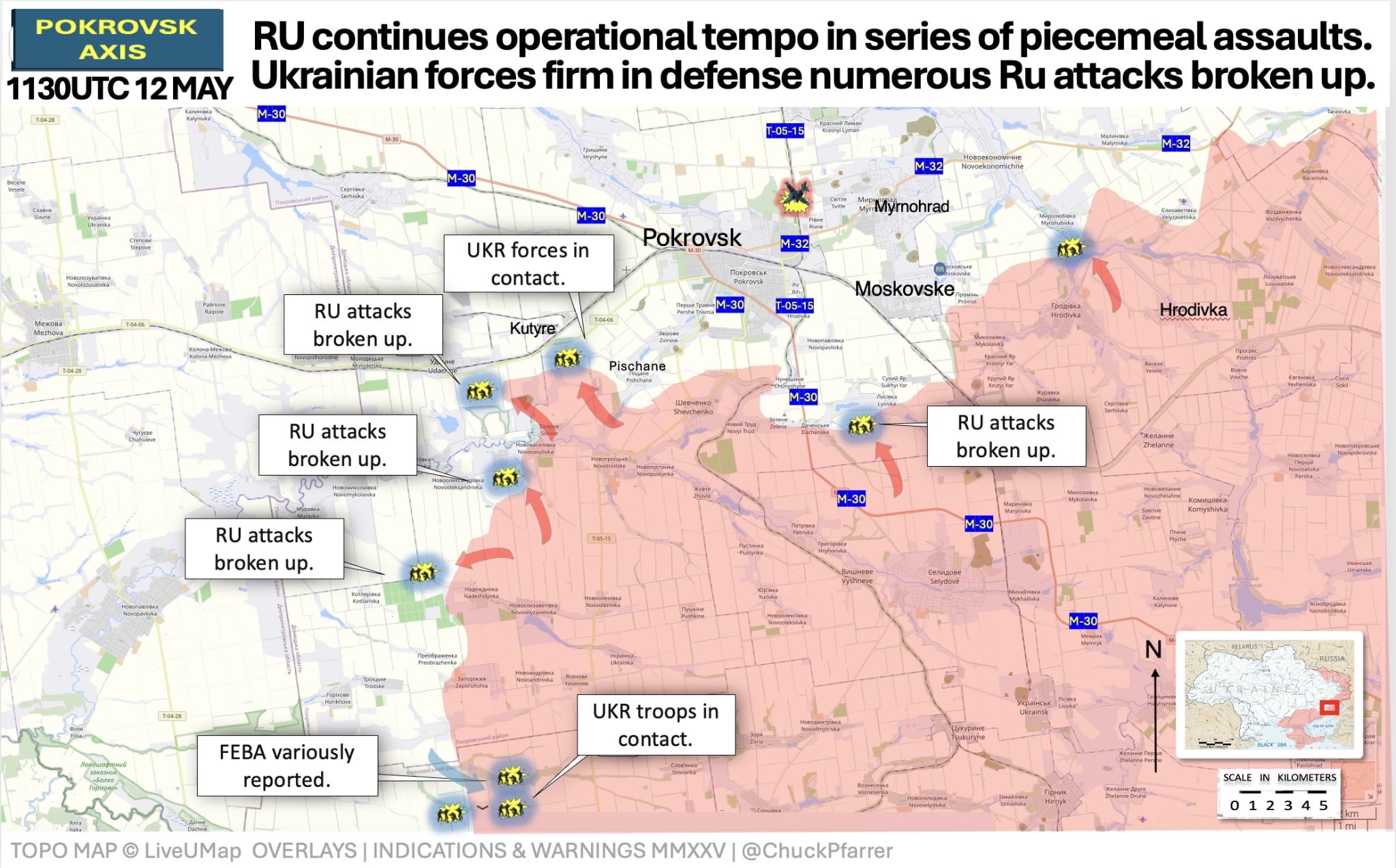 -Ukraine: Μέτωπο Ποκρόβσκ Ουκρανίας:Ο Ρωσικος στρατος κατελαβε την Kotlyarovka. Οι Ρώσοι επεκτείνονται στο Νοβολενίβκα. Μέτωπο Χορλίβκα: Οι Ρώσοι εδραιώνουν θέσεις στη Ζαμπάλκα (Τόρεκ) και προελαύνουν στην περιοχή Ρομανίβκα.Στην περιοχή της Χερσώνας, ρωσικά στρατεύματα έχουν εδραιώσει τον έλεγχο των νησιών στον Δνείπερο κοντά στη Νόβα Κακχόφκα. Oι ουκρανικές δυνάμεις έχουν ανακαταλάβει αρκετές περιοχές της βιομηχανικής ζώνης στα βόρεια προάστια του Τορέτσκ.