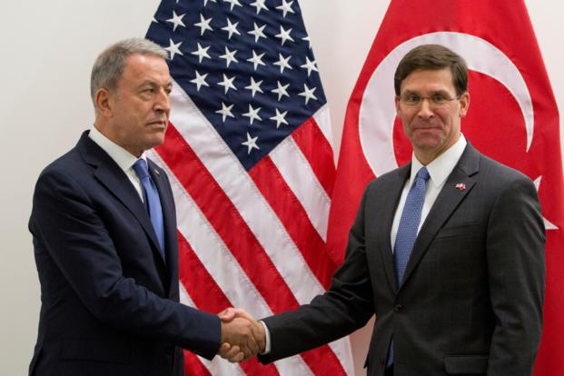 Making his first appearance at a meeting of NATO defense ministers, Esper had what a Pentagon spokesman described as a “frank and transparent” meeting with his Turkish counterpart Hulusi Akar.