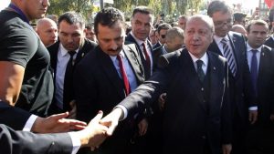 File Photo: Turkish President Recep Tayyip Erdogan (C) in the company of Serbian President Aleksandar Vucic shakes hands with the citizens of Novi Pazar in Novi Pazar, Serbia, 11 October 2017. EPA, Djordje Savic OCTOBER 14, 2017