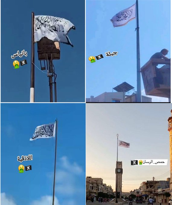 -#Syria:Η τρομοκρατική ομάδα HTS αντικαθιστά τη νέα σημαία της Συρίας με το παλιό της έμβλημα σε τέσσερις συριακές πόλεις.