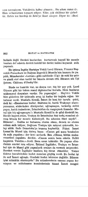 Σύμφωνα με την επίσημη ιστορία, ο Πόλεμος της Ανεξαρτησίας τελείωσε, η Ελλάδα οδηγήθηκε στη θάλασσα, ο Μουσταφά Κεμάλ Πασάς έστειλε τον Ισμέτ Πασά στη Λωζάνη, και αυτός χτύπησε τη γροθιά του στο τραπέζι της Λωζάνης, αφήνοντας ολόκληρο τον κόσμο άναυδο. Ωστόσο, η αλήθεια είναι ακριβώς το αντίθετο. Έχουμε έναν αρχιστράτηγο που λέει: «Ξεχάστε να χτυπάτε το τραπέζι, παραδώστε ακόμη και την Κωνσταντινούπολη αν χρειαστεί». Έχει επίσης στο μυαλό του τον επικεφαλής αντιπρόσωπό του, τον Ισμέτ Πασά: «Ας εγκαταλείψουμε τη Μοσούλη και ας την ξεφορτωθούμε». Γνωρίζουμε ότι αυτές οι πληροφορίες δεν θεωρούνται πρωταρχικά στοιχεία από ιστορικής μεθοδολογίας.