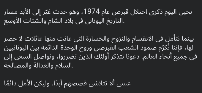 -#Rum: Σήμερα, τιμούμε με επισημότητα την τραγική επέτειο της τουρκικής κατοχής της Κύπρου το 1974, ένα γεγονός που άλλαξε για πάντα την πορεία της ελληνικής ιστορίας στην Ανατολική Μεσόγειο και την ευρύτερη διασπορά.Καθώς αναλογιζόμαστε τη διαίρεση, τον εκτοπισμό και την απώλεια που βίωσαν αμέτρητες οικογένειες, τιμούμε την ανθεκτικότητα του κυπριακού λαού και το διαρκές πνεύμα ενότητας μεταξύ των Ελλήνων σε όλο τον κόσμο. Ας θυμηθούμε όσους επλήγησαν και ας συνεχίσουμε να αναζητούμε δικαιοσύνη.