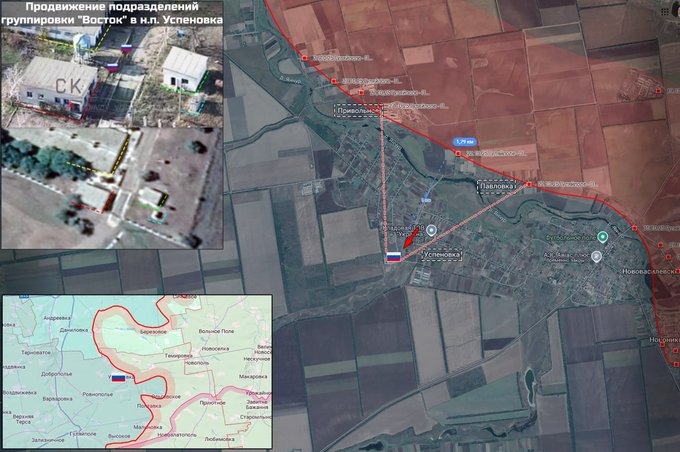 Χουλιαΐπολε – Ουσπενίβκα Ενεργές πολεμικές επιχειρήσεις στην περιοχή Χουλιαΐπολε. Επίθεση από τη μονάδα πεζικού των Ρωσικών Ενόπλων Δυνάμεων στην Ουσπενίβκα. Η ομάδα εφόδου παίρνει θέση σε αγροτικά κτίρια στα δυτικά περίχωρα του χωριού. Το έδαφος του οικισμού Ουσπενίβκα έχει τεθεί υπό τον έλεγχο των δυνάμεων της Ρωσικής Ομοσπονδίας. Κρατικές σημαίες έχουν υψωθεί πάνω από τα κτίρια του οικισμού.Επέκταση της ζώνης ελέγχου στη δυτική όχθη του ποταμού Γιαντσούρ στην Ουσπενίβκα κατά περισσότερο από 1,5 χλμ. 47.778650,36.382018.