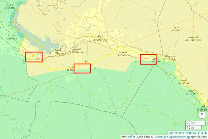 Στρατιωτική πηγή των SDF στο Al-Arabiya: -Οι τομείς συμφωνίας που επιτεύχθηκαν με το καθεστώς Τζολάνι, υπό την αιγίδα του διεθνούς συνασπισμού, περιλαμβάνουν μόνο τις πόλεις Ντέιρ Χαφιέ και Μασκάνα στην ανατολική ύπαιθρο του Χαλεπίου. -Η συμφωνία δεν περιλαμβάνει καμία κωμόπολη ή πόλη στην επαρχία Ράκα. -Οι SDF θα καταφύγουν σε αντίσταση σε οποιαδήποτε περιοχή ή πόλη που δεν καλύπτεται από τη συμφωνία.