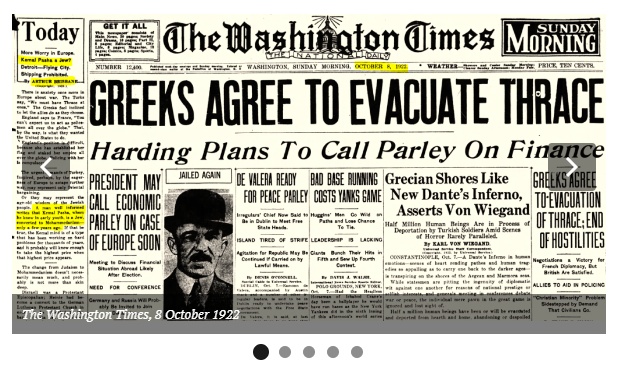 Τηλεγράφημα από την Περιφέρεια Καραμουρσέλ προς το Υπουργείο Εσωτερικών της Κωνσταντινούπολης. «Μετά την παρέμβαση των Βρετανών, η ελληνική διοίκηση κατοχής άρχισε να εκκενώνει την πόλη».
