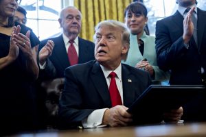 President Trump in the Oval Office of the White House on Jan. 30. (Andrew Harrer/Bloomberg)