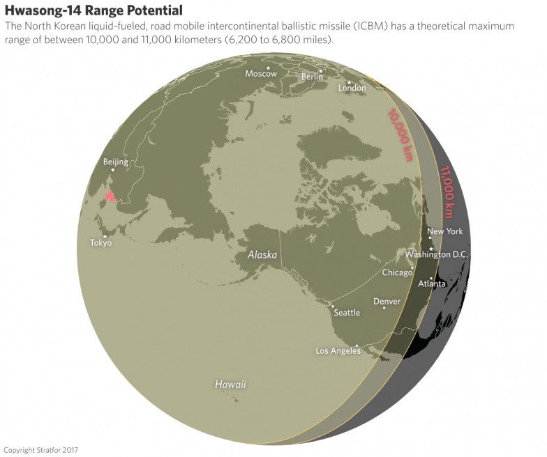 Η πιθανότητα ενός διεθνούς πολέμου, χωρίς επιπλέον κλιμάκωση, είναι ακόμα σχετικά χαμηλή, αλλά η πιθανότητα κατά λάθος σύγκρουσης αυξάνεται. Η Βόρεια Κορέα απείλησε ότι στο κοντινό μέλλον θα μπορούσε να δοκιμάσει τους πυραύλους της κοντά στο αμερικανικό έδαφος της νήσου Γκουάμ, να δοκιμάσει τους πυραύλους της ανοικτά των αμερικανικών ακτών, να αναχαιτίσει αμερικανικά βομβαρδιστικά κοντά στην Κορέα και να διεξάγει πυρηνική δοκιμή στον Ειρηνικό Ωκεανό.