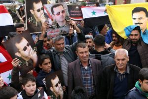 Television broadcasts and social media postings showed crowds celebrating in the main square of the city of Afrin, waving flags and holding posters of President Bashar al-Assad of Syria and the Kurdish militant leader Abdullah Ocalan, who is imprisoned in Turkey on terrorism charges.