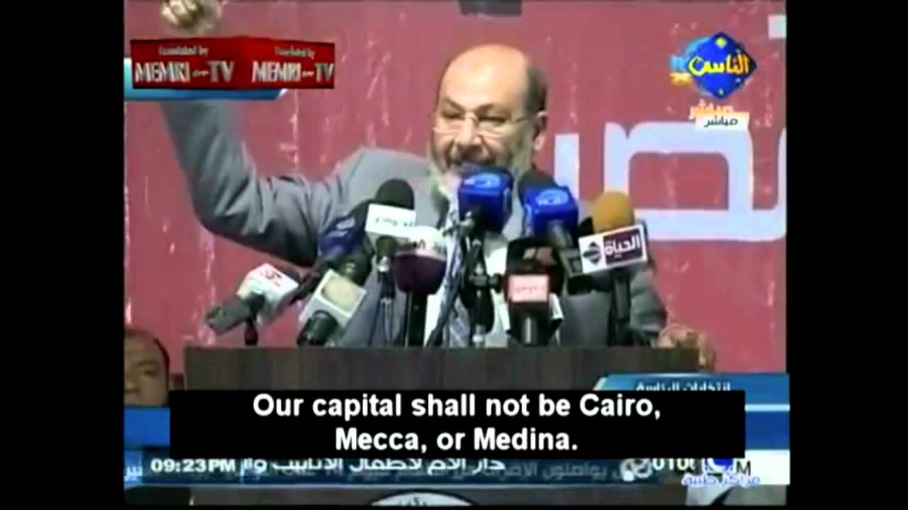 This plan has been heard in Muslim Brotherhood media pronouncements. In 2012, for example, Safwat Higazi, the Muslim Brotherhood’s chief spokesman in Egypt, said the capital of the Islamic Caliphate that can unite all the Arab nations “is not Mecca, not Medina, not Cairo, but Jerusalem:”