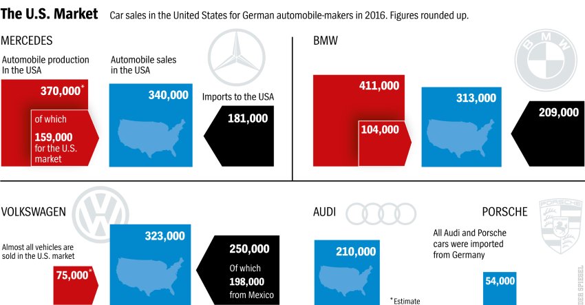 “The fact is and remains that the global automobile industry remains reliant on free trade,” says BMW CEO Krüger. “I believe that integration in world trade, overall, provides a major advantage for all concerned,” says Daimler CEO Dieter Zetsche. No one wants to provoke Trump. The modus operandi at the moment seems to be to duck away from the threats coming out of the White House. Behind the scenes, the companies are seeking to establish contact with the president’s confidants and to use those channels to try to ensure that the facts about German manufacturers’ activities in the U.S. ultimately reach Trump’s ears.