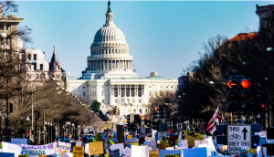 Note as well that despite its ostensible domestic focus, USCMO is ultimately and fundamentally anti-Israel. The virulently anti-Semitic organization AMP is one of the founding members; and in his speech, Oussama Jammal said, “Today and tomorrow is about domestic issues. But next week, it is the week of Palestine.” Noting that AMP was holding its own Palestine Advocacy Day on April 5th, Jammal called on everyone to participate in that event as well: “We have to stand up and we have to be strong, and we have to defend the rights of the Palestinian people.”