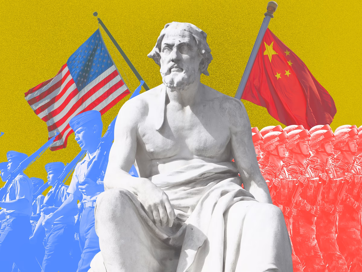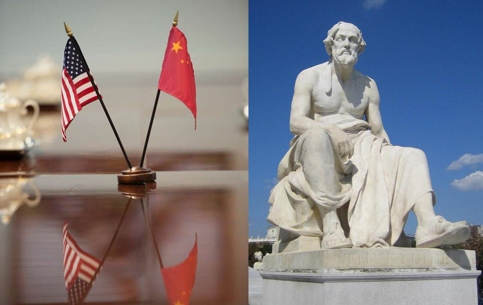 Υπάρχει μια φράση που συμπυκνώνει τη θεωρία: η παγίδα του Θουκυδίδη — αναφερόμενη στη βίαιη σύγκρουση που έρχεται όταν μια ανερχόμενη δύναμη αμφισβητεί τον κυρίαρχο ηγεμόνα. Στην εποχή του Θουκυδίδη, ήταν η Αθήνα που αμφισβήτησε επιτυχώς την υπεροχή της Σπάρτης. Όμως είναι ένα μοτίβο που έχει εμφανιστεί επανειλημμένα στην ιστορία, με την φιλοδοξία και την επιθετικότητα του προκλητή σχεδόν πάντα να καταλήγουν σε αιματοχυσία.