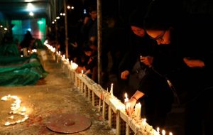 Iranians light candles to commemorate the death of Imam Hussain, the grandson of Prophet Muhammad, during an Ashura ceremony in the capital Tehran on Oct. 12, 2016. The “Shame-e-Qariban” (strangers’ dinner) ritual is held after the day procession that depicts the suffering of the third Shiite imam, whose death 14 centuries ago marked the beginning of the Sunni-Shiite split, which persists in Islam to this day. ATTA KENARE/AFP/Getty Images