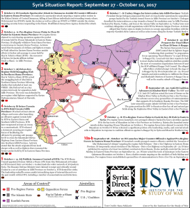 What changed: The government of Iraq backed by Iran began to compel Iraqi Kurdistan into withdrawing its armed forces from Kirkuk on October 12. Baghdad and Tehran separately issued ultimatums to the KRG. Prime Minister Haider al Abadi and leader of the Iranian-proxy Badr Organization, Hadi al Ameri, both issued statements on October 13 demanding Kurdish forces relinquish unilateral control over Kirkuk. Iranian Islamic Revolutionary Guards Corps Quds Force Commander Qassem Soleimani traveled to Iraq and likely delivered a direct ultimatum from Ayatollah Ali Al Khameni to Kurdish leader. He also delivered a message of Khameni’s support to Abadi. He remains in Iraqi Kurdistan at the time of writing, according to local reports.