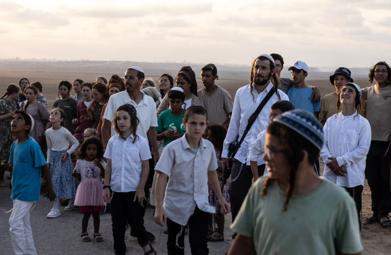 Θρησκευόμενοι εθνικιστές που επιθυμούν να επανεγκατασταθούν και να ζήσουν στη Γάζα κατά μήκος της ισραηλινής πλευράς των συνόρων της Γάζας, στις 22 Αυγούστου. (Heidi Levine/For The Washington Post)